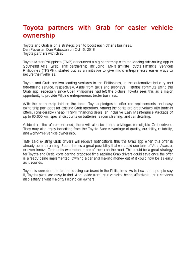 Updated as of 1st january 2017 beginning 1st january 2017, cars manufactured in 2006 will no longer be accepted. Grab will also be having the grabbae experience. a total of 70 grabbaes (50 in metro manila manila, 20 in cebu) will serenade and surprise grab consumers this. Restaurants, doctor office, airport etc, and it would have your boys playing races for a long time! (f) what happens when i stop driving for grab? Eligible applicants must meet requirements that include, but are not limited to, the following: